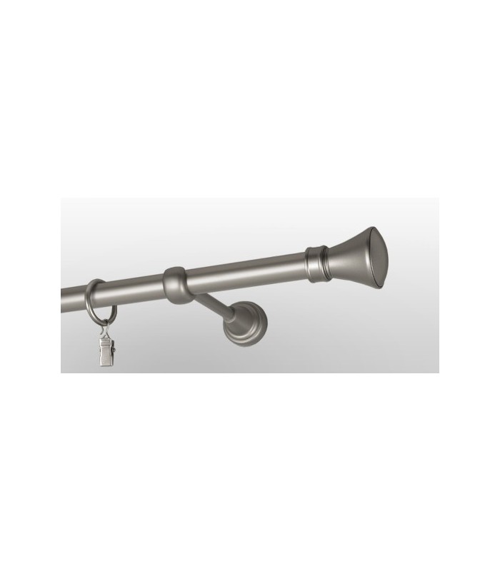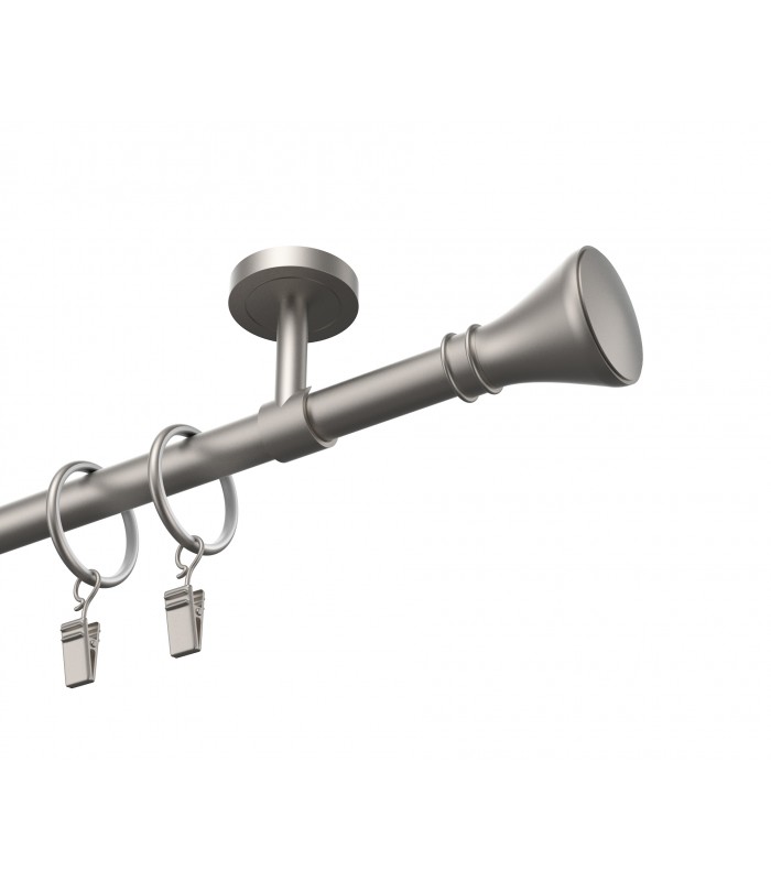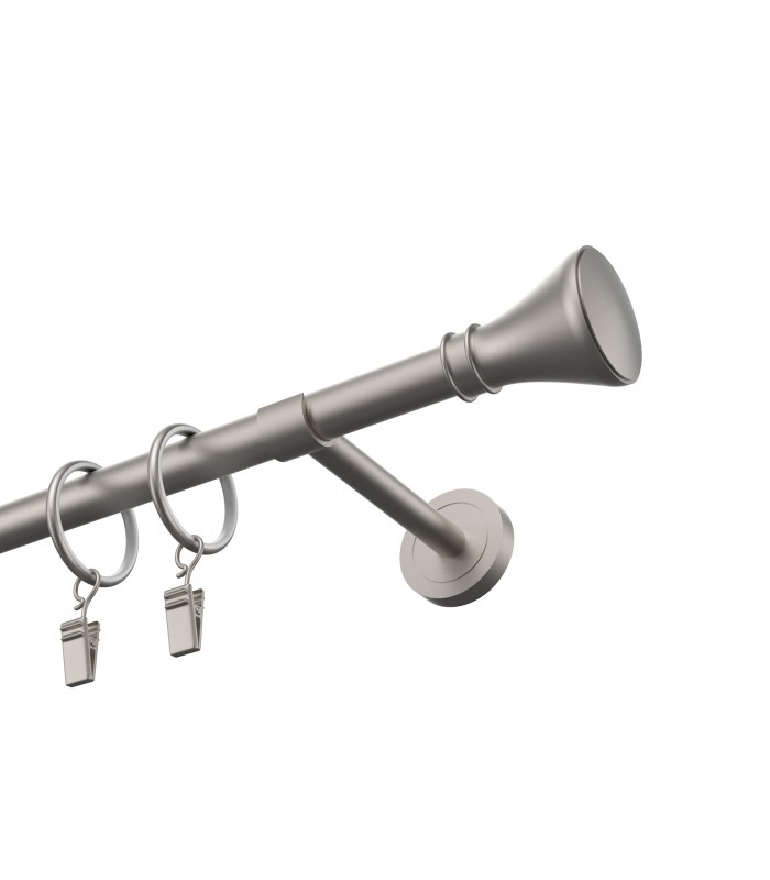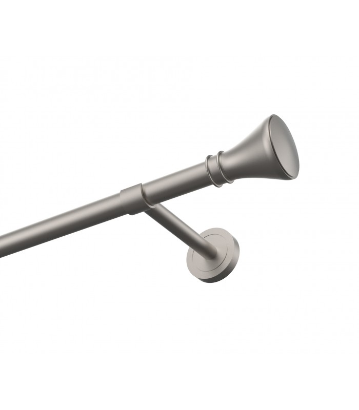 Elegantná a pevná kovová garníža v prevedení Satin s dizajnovou koncovkou Koloseo. Vhodná pre klasické aj moderné interiéry. Vďaka kvalitnému spracovaniu a stabilnému uchyteniu zabezpečuje dlhodobú spoľahlivosť aj pri ťažších závesoch.